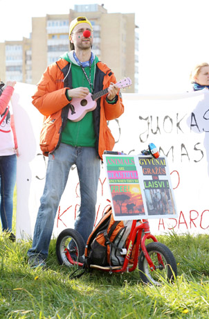 „Tik tik tik laisvi, gyvūnai gražūs tik laisvi“, – grodamas ukulėle ir dainuodamas piketuotojus užvedinėjo Kristupas.
