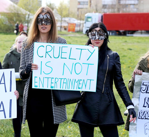 „Nesąmonė, šita akcija bereikalingas darbas!“ – protestuotojus pasitiko vyras, ką tik nusipirkęs bilietą į cirko pasirodymą.