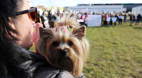 Kai kurie piketuotojai prie cirko atėjo su savo naminiais augintiniais.