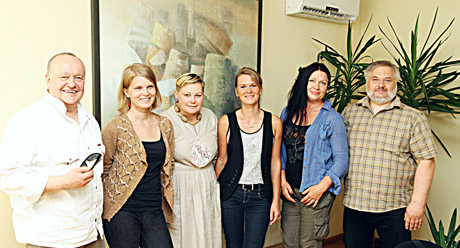 KŪRĖJAI: Trečiąjį grafikos plenerą Šiauliuose pristatė jo sumanytojas grafikas Vaidotas Janulis (pirmas iš kairės) bei dalis jame dalyvausiančių menininkų.