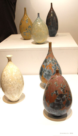 VA­ZOS: Kris­ta­li­nės gla­zū­ros dar­bai ypa­tin­gi ir tuo, jog tik apie 50 pro­cen­tų jų pa­vyks­ta, ki­ta da­lis pra­žūs­ta de­gant aukš­to­je tem­pe­ra­tū­ro­je.