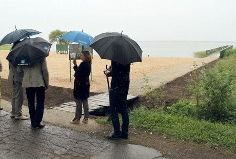 PRIĖMIMAS: Darbų priėmimą ženklino lietus. Šiandien sinoptikai žada lietų, bet sekmadienį neturėtų lyti – bus proga išbandyti naują paplūdimį.