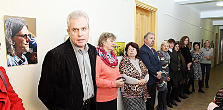 PARODA: Filosofo Jurgio Dieliauto (pirmas iš kairės) pastebėjimu, Juozo Šalkausko parodos „Mūzos pavilioti. Poezijos pavasariai“ nuotraukose įžvelgiamas autoriaus šiek tiek šmaikštus, švelniai ironiškas žvilgsnis į poetus ir rašytojus.