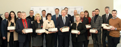 Vakar Šiaulių miesto savivaldybėje kalėdiniais pyragais apdovanoti miesto švenčių rėmėjai, verslo globėjai, miesto gražintojai. Pirmą kartą paskelbti šių metų nominantai. Meras Artūras Visockas išdalijo 16 pyragų.