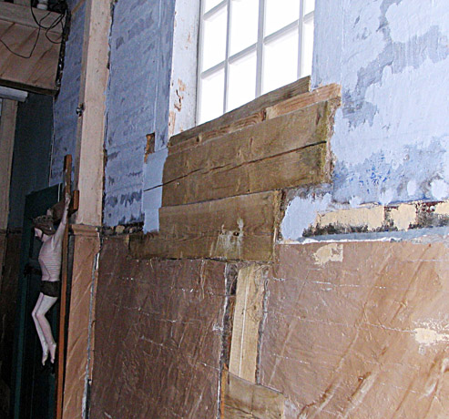 Tikintieji rodė statybininkų paliktą rąsto gabalą palėpės angoje – per jį negali uždaryti palėpės dangčio. Palėpėje, kuri nėra apšiltinta, dalis viengubos skliautų sienos lentų jau šlapiuoja, o nuo drėgmės gali įsimesti grybas.