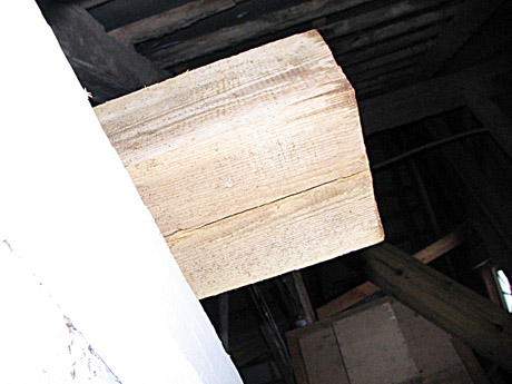 RĄSTGALIS: Dėl statybininkų palikto rąsto galo neužsidaro palėpės dangtis.