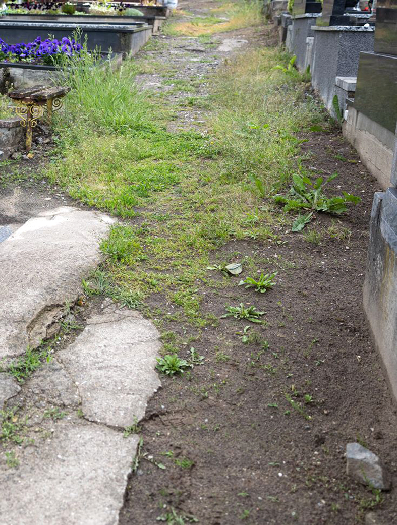 Moteris pasakoja, kad žmonės pro šoninius vartus pažliugusiu taku eina tarsi žaisdami šachmatais – aplenkdami duobes ir balas, o kai kur pasilaikydami net už medžių. Prie tako esančius kapus prižiūrintys gyventojai stengiasi sukelti kapų šonus, kitaip lietus esą ir kapavietes išplautų.