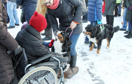 Renginyje, skirtame paminėti Tarptautinę neįgaliųjų žmonių dieną, vaikus džiugino gauruotieji Berno zenenhundai.