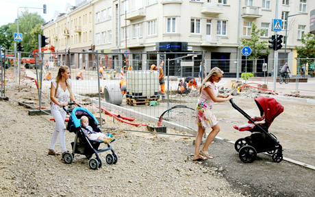 Mamoms su vaikais vežimėliuose nelengva įveikti rekonstrukcijos kliūtis.