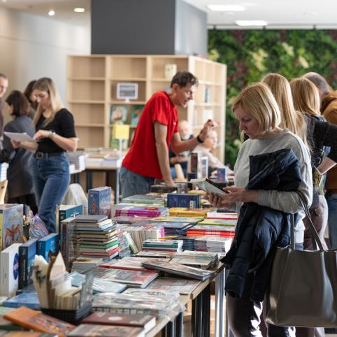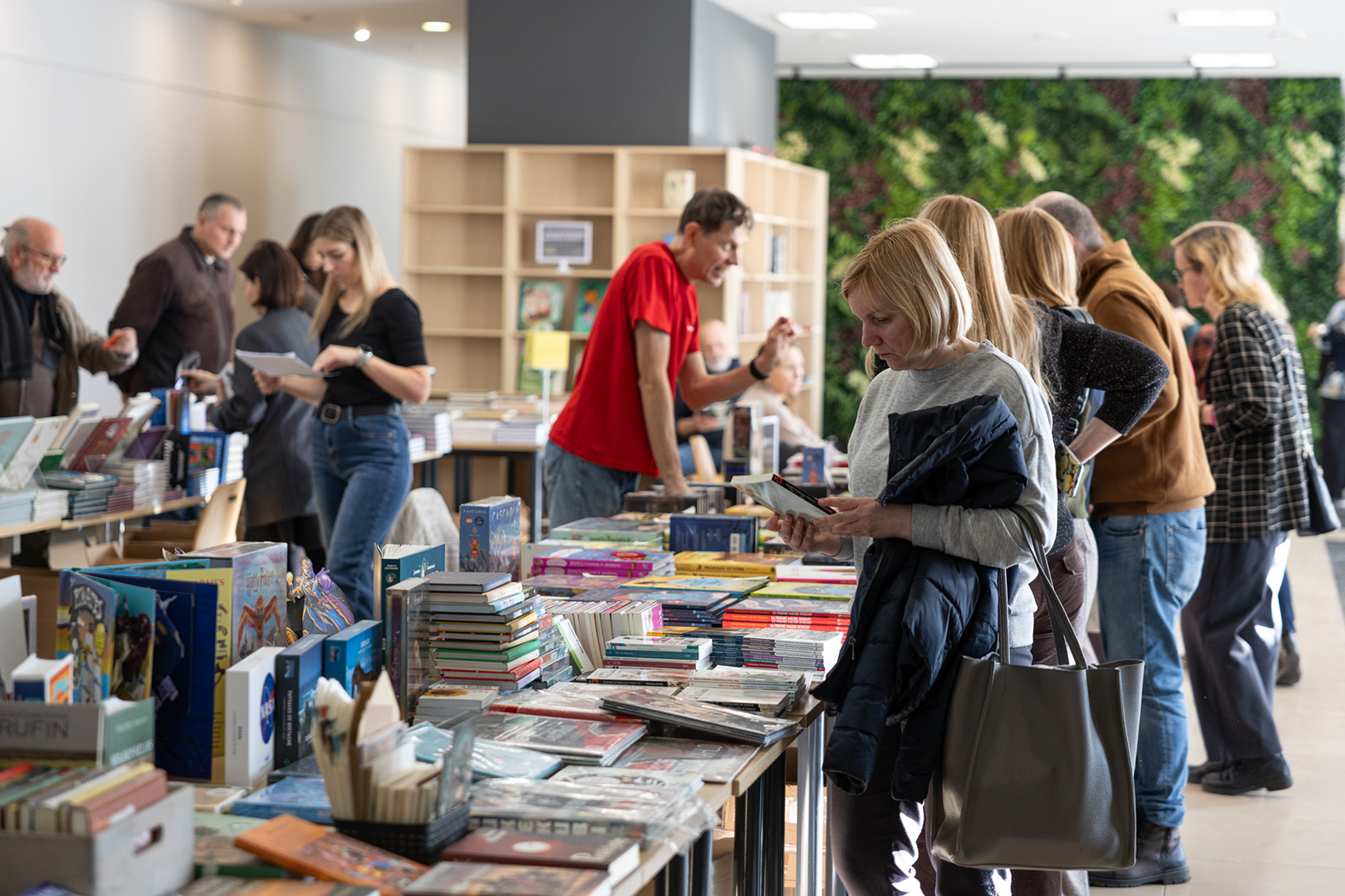 Visą šeštadienį bibliotekos erdvėse vyko susitikimai, pokalbiai, diskusijos, edukaciniai užsiėmimai bei dirbtuvės, prekyba leidiniais.