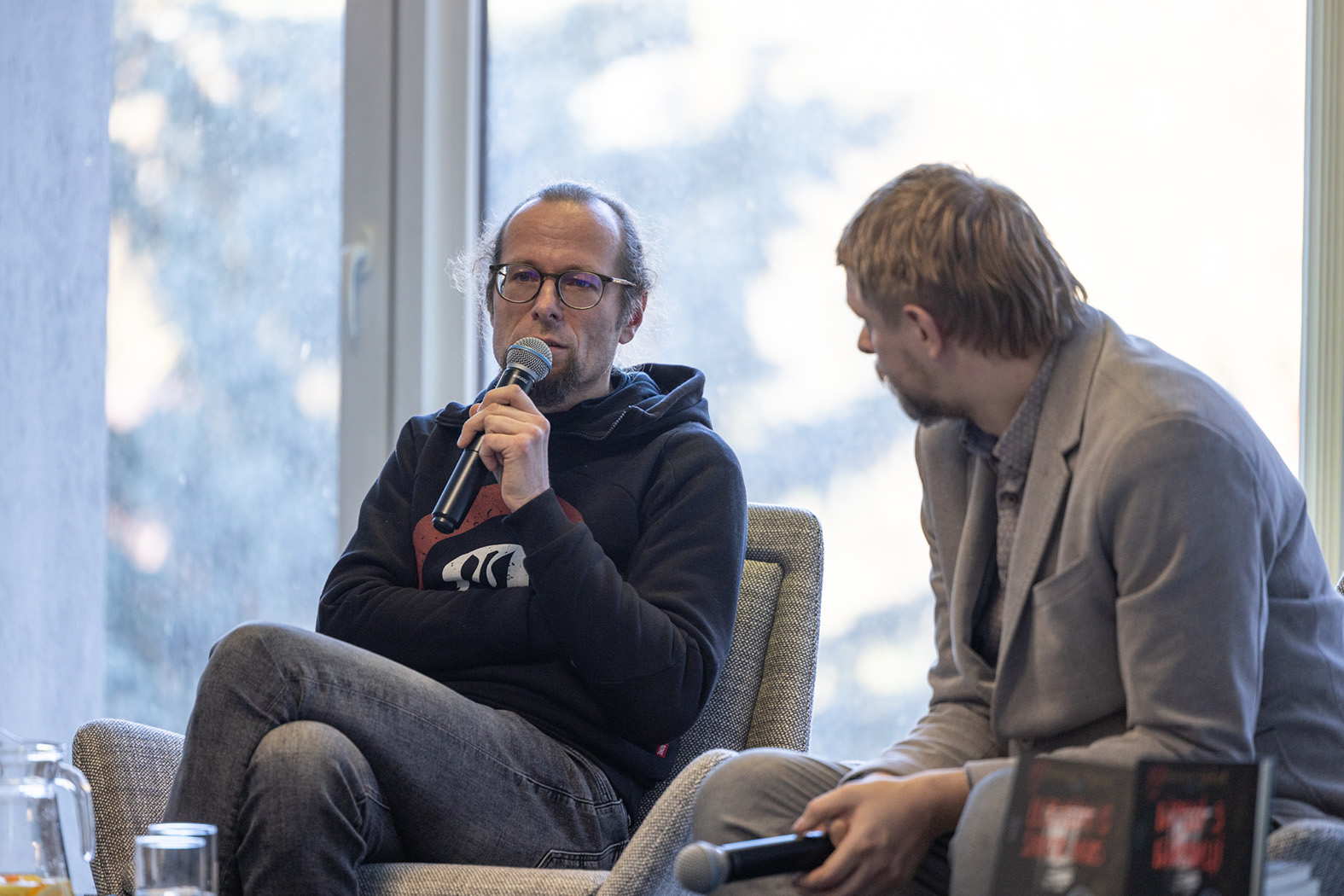 Kūrybinio rašymo ir gyvenimo atradimais dalijosi aktorius Saulius Bareikis, knygos „Odė lūzeriui“ autorius, ir Sandra Bernotaitė, knygos „Pojūčių rašymas“ autorė.