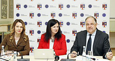 Šiaulių universiteto Mokslo instituto direktorė prof. Ingrida Šaulienė, mokslo ir meno prorektorė prof. Diana Šaparnienė ir rektorius prof. Donatas Jurgaitis pristatė naujai įsteigtą Šiaulių universiteto Mokslo institutą ir forumą „Mokslo ir verslo partnerystė regiono pažangai“.