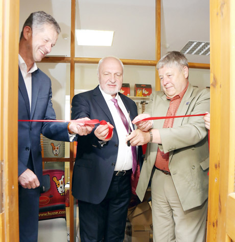 Valentino Mazuronio biuro atidarymo momentas – dalyvaujant Šiaulių prekybos, pramonės ir amatų rūmų prezidentui Vidmantui Japertui (kairėje), Šiaulių verslo inkubatoriaus direktoriui Aliui Valiui (dešinėje).