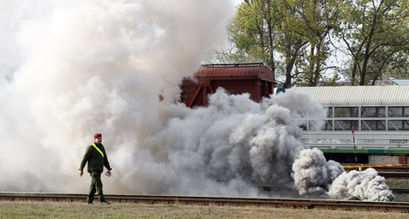 VAGONAS: „Žalieji žmogeliukai“ padegė vagoną su cheminėmis medžiagomis.
