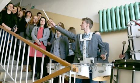 Algirdo Juliaus Greimo vardo skaityklos atidaryme grojo mušamųjų instrumentų ansamblis „Ritmas kitaip“.