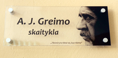 „Tikrovė yra tiktai tai, kuo tikima“, – šie Algirdo Juliaus Greimo žodžiai parinkti vardinės skaityklos lentelei.