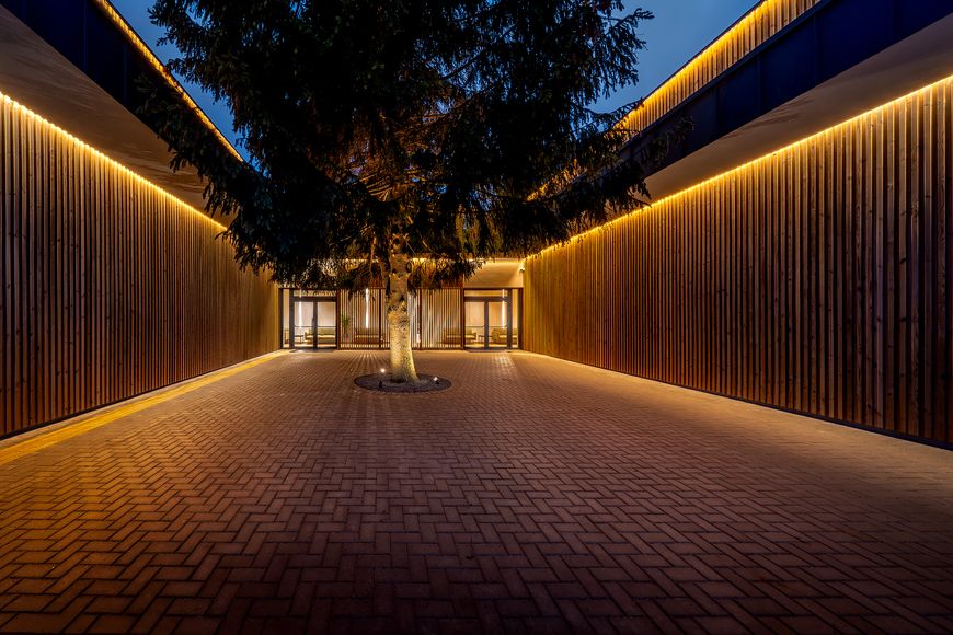 Tam, kad įgyvendintų savo viziją Šiauliuose, organizatoriai ilgai dairėsi tinkamo sklypo. Jis buvo rastas J. Jablonskio gatvėje. Dabar pro panoraminius atsisveikinimo namų langus artimieji ir kiti atėję atsisveikinti su velioniu mato daug žalumos – atsisveikinimo namų teritorijoje esantį parką su įvairiais medžiais ir augmenija.