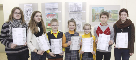 NUGALĖTOJAI: Dokumentinio piešinio konkurso laureatai ir prizininkai (iš kairės): šiaulietės Vilmantė Daugėlaitė ir Milda Sakalauskaitė, joniškiečiai brolis ir sesuo Rokas Povilaitis ir Viktorija Povilaitytė, joniškietė Andrėja Briedytė, šiauliečiai Domantas Pigulevičius ir Austėja Lanzbergaitė.