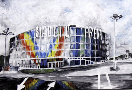 DUETAS: Kelmiškių Rugilės Kavaliauskaitės ir Gitanos Jomantaitės nupiešta Šiaulių arena – lengvai atpažįstama.