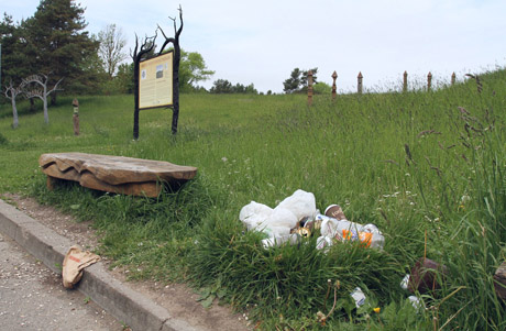 Prieš akis – lentelės su Baltų kultūros parko informacija, šalia išdidžiai pūpso perpildytos šiukšliadėžės. Gerta kavos, valgyta maisto, prisvaidyta kitokių šiukšlių. Faktas – parko lankytojams šiukšlių dėžės per mažos arba čia retai užsuka jų surinkėjai.