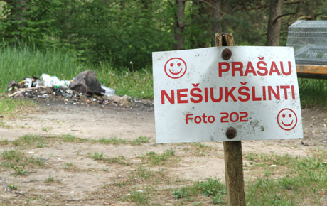 Ant Salduvės kalno naujais laiptais pakyla jaunuolių ekskursija. Dairosi, klausosi gidės pasakojimų apie Šiaulius. Pasukus link Gamtininkų stoties, atsiveria ir laužavietė, šalia kurios išrikiuoti praplyšę šiukšlių maišai, mėtosi šiukšlės. Stovi ir lentelė su užrašu: „Prašau nešiukšlinti Foto 202“. Šiaulių miesto mero Artūro Visocko buvusio fotosalono prašymas. Gal dabar turėtų atsirasti „Mere, prašau išvežkite šiukšles“?