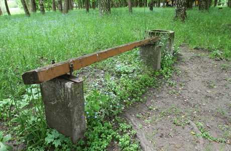 Žolė parke nušienauta, tarp medžių mėlynuoja neužmirštuolių plotai, suoleliai tušti, kai kurie sulūžę, tačiau šiukšlių dėžės šalia jų išduoda, kad žmonių kažkada tikrai būta.