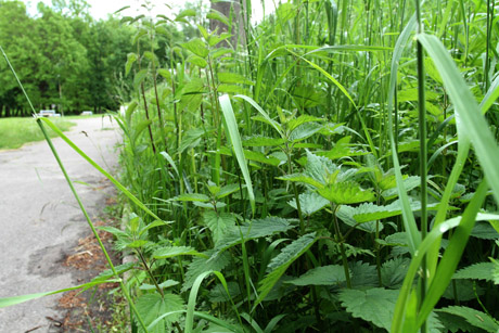 AUGMENIJA: Centrinio parko estrados šlaitai "puikuojasi" dilgėlėmis.