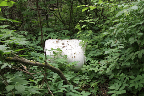 Žolė nešienauta, išvirtę medžiai ir išvešėję krūmynai tik patvirtina, jog nosies neįkiši. Nebent benamiai, nes tankiuose krūmuose paslėptas dailiai susuktas ir plėvele uždengtas čiužinys. Krūmynų tankmėje ir laužavietė palikta.