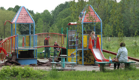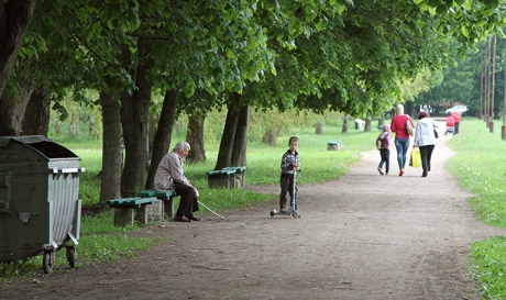 Taku lėtai vaikštinėja mamos su vežimėliais. Šunų vedžiojimo aptvare vyras žaidžia su šunimi. Prie žaidimų aikštelės ant suolo sėdi šiaulietė Irena su anūku Viliumi. Jie čia – dažni svečiai.