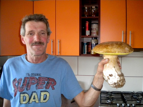 LAIMIKIS: Evgienij Asačiovas iš Naujosios Akmenės grybauja Latvijoje, miškuose prie Aucės. Paskutinis laimikis buvo neįtikėtinas:  baravykas svėrė 800 gramų ir buvo visiškai sveikas.