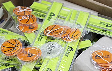 Atšvaitą prie drabužių pritvirtinti reikia taip, kad būtų matomas iš visų pusių. Pakabinamą atšvaitą, pervertą virvele, segtuku siūloma prisegti prie drabužių, dešinėje pusėje, kad jis švytuotų žmogaus kelių aukštyje.