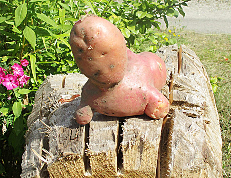 GYVŪNAS: Žagarietis Sigitas Budrius darže iškasė ruoniuką primenančią bulvę.