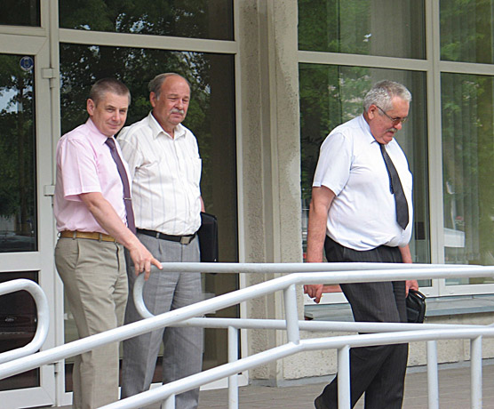 BEKELĖS: Pakruojo savivaldybėje po pasitarimo dėl rajono kelių būklės (iš kairės) Pakruojo savivaldybės administracijos direktorius Virginijus Grigonis, „Šiaulių regiono kelių“ generalinis direktorius Piotras Bakanovas, savivaldybės vicemeras Romas Medzveckas išsiskirstė neslėpdami, jog dėl lėšų stygiaus rajone kol kas liks ne vienas neremontuotas žvyrkelis.