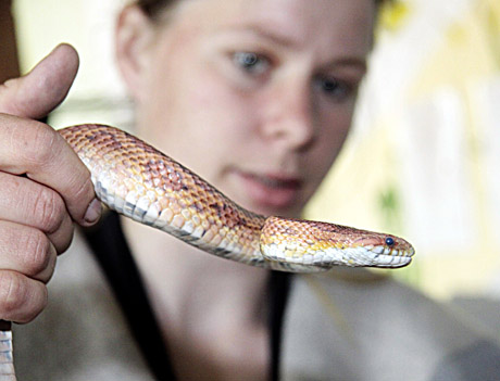 ROPLYS: Neaišku, ar šis kukurūzinis žaltys ilgai kentė naktinę vėsą daugiabučio pievoje.