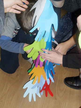 DRAUGYSTĖ: Iš rankyčių sukurtos kalėdinės eglės – draugystės ir tolerancijos simbolis.