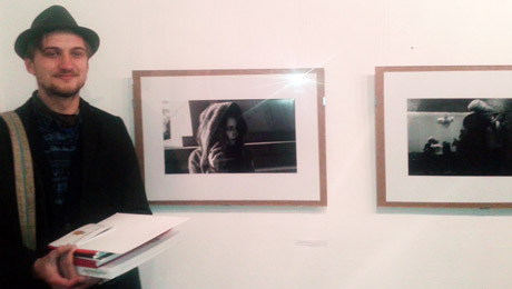 Linas Čiučelis (Kauno Taikomosios dailes mokykla) prie apdovanotos nuotraukų kolekcijos. Nuotrauka A. Uoginto.
