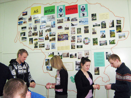 I kurso SAE 14/1 grupės mokiniai, maironiečių būrelio nariai, pasikvietė S. Daukanto gimnazijos mokines Eimantę Laurušaitę, Aistę Ulvidaitę, Godą Čerkauskaitę, Liviją Kazenkaitę, kurios jaunuolius mokė pynimo būdų, draugiškai pasidalijo apyrankėmis ir nusifotografavo prie maironiečių stendinio pranešimo „Aš myliu Lietuvą“.