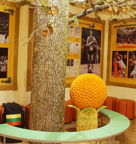 Lie­tu­vos ak­lų­jų ir silp­na­re­gių są­jun­gos Jo­niš­kio fi­lia­lo drau­gi­jos na­riai Krep­ši­nio mu­zie­jui pa­do­va­no­jo ran­kų dar­bo po­pie­ri­nę va­zą ir sti­li­zuo­tą krep­ši­nio ka­muo­lį.