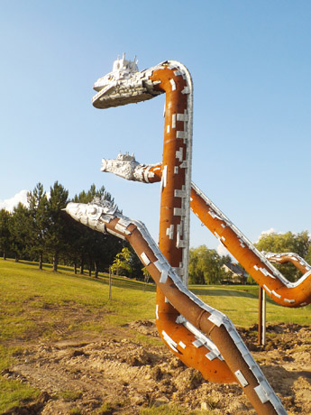 Technologija, kaip matote, ir matyta, ir gana neįprasta, kitur nematyta – šiaulietiška. Rūdys (jų spalva) ir cinko dekoras, kuriuos esu išbandęs ankstesniuose savo kūriniuose – tai ir mūsų galimybės, ir mūsų krašto išskirtinumas. Šioms žalčių skulptūroms naudojamos metalo technologijos, jų koloristika ir mastelis, gražiai susišaukia su tautodailininkų sukurtomis medžio skulptūromis, esančiomis Naisiuose. Beje, išskirtinė „Žalčių šei
