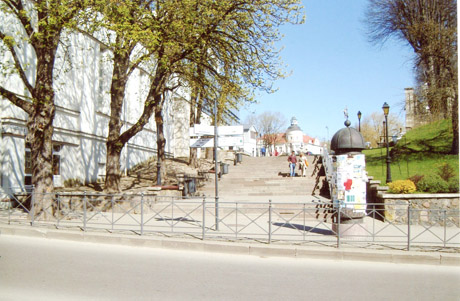 Laipteliais į kalną, į katedros aikštę.