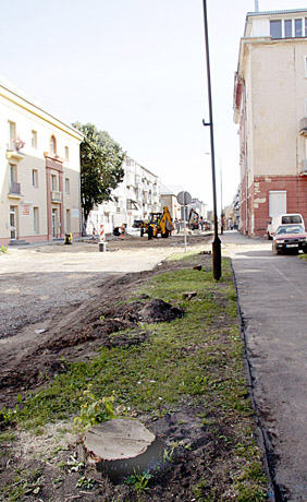 REKONSTRUKCIJA: Dvaro gatvėje jau nebeliko 70 medžių, savo eilės laukia dar 24. Po gatvės rekonstrukcijos jie bus atsodinti glaustašakėmis liepomis.