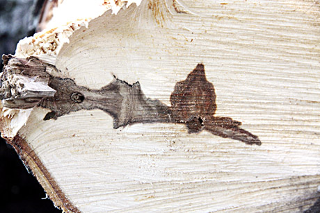 PASEKMĖS: Netinkamai nugenėtas kaštonas pradėjo pūti ties nupjauta šaka.