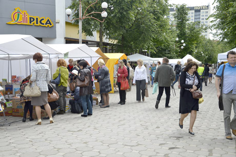 Ketvirtadienio rytą prie P. Višinskio paminklo rikiavosi palapinės, staleliai, buvo gabenamos ir dėliojamos įvairios knygos. Leidyklų atstovai pirmose eilėse dėjo knygas už litą, du ar penkis. Kiek tolėliau – už 10-15 litų, dar aukščiau brangiausios – enciklopedijos, žinynai, albumai – 100 litų ir daugiau.