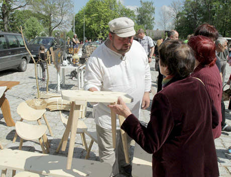 KIEMTURGIS: Prekyba gerai ėjosi amatininkui Laimonui Bartkui, kurio uosines kėdutes ir suolelius pirkėjai graibstyte išgraibste.