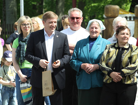SVEČIAS: Į šventę atvykęs Lietuvos valstiečių ir žaliųjų sąjungos pirmininkas Ramūnas Karbauskis už nuveiktus darbus dėkojo darbščiai ir sustelkusiai kurtuvėniškių bendruomenei.