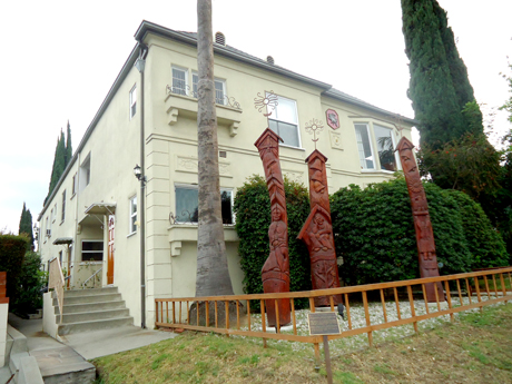 PARAPIJA: Los Andželo lietuvių parapijos namai – tarsi koks Lietuvos kampelis su savo koplytstulpiais.
