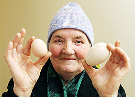 Bubių kaime, Šiaulių rajone, gyvenanti Zuzana Visockienė, vieną rytą nuėjusi į tvartą surinkti rytinio „derliaus“, apstulbo – vienoje gūžtoje pūpsojo milžiniškas kiaušinis. Galiūnas svėrė 140 gramų.