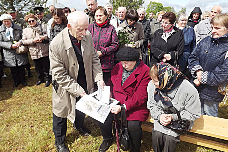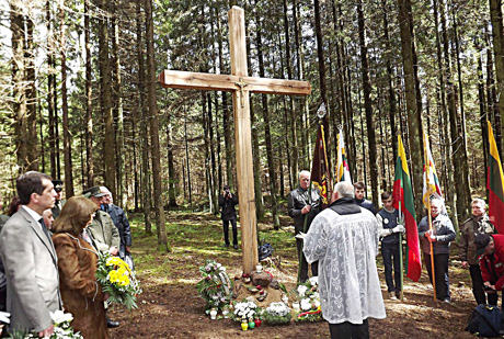 RENGINYS: Skobiškės miške pašventinamas kryžius, skirtas jame žuvusių partizanų atminimui.