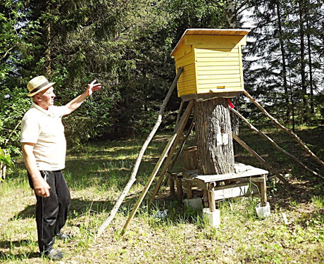 Paežeriuose (Šiaulių rajonas) nugriuvus šimtametei liepai, kitoje ežero pusėje gyvenantis Vladas Sutkus pasirūpino jos drevėje gyvenusiomis bitėmis.