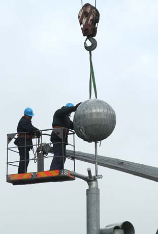 DEMONTAVIMAS: Antradienį dalimis buvo išardyta 2011 metais dizainerio Viliaus Purono sukurta skulptūra „Penktasis kėlinys“.